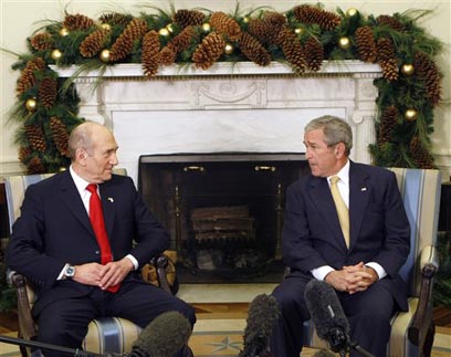 הנשיא בוש ורה"מ אולמרט בפגישתם בבית הלבן (צילום: AP)
