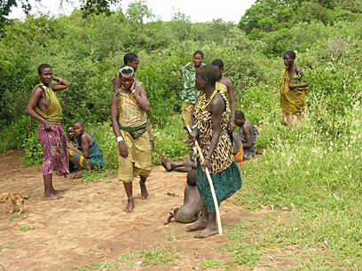 בצבעי הסוואנה. בני שבט ההדזבה (צילום: שלמה כרמל)