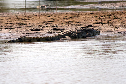 תנין משתרע על גדת נהר רואהה (צילום: שלמה כרמל)