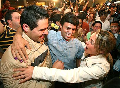 פעילי אופוזיציה חוגגים בבירה קרקאס (צילום: AFP)