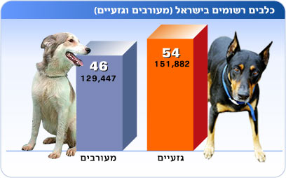 מתוך נתוני המשרד עולה כי 141,714 כלבים רשומים בישראל הינם זכרים (50.4 אחוז) לעומת 139,615 נקבות כלבים (49.6 אחוז) הרשומות במאגר. כ-60 אחוז מהנקבות מעוקרות ורק כ-20 אחוז מהזכרים מסורסים מכלל הכלבים הרשומים ברחבי הארץ.