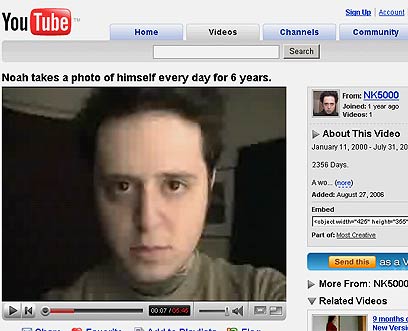 לצד גרביים מזמרות ובחורות מפזזות בחדר השינה, פלטפורמת שיתוף הוידאו ב-YouTube חושפת לעיתים נדירות גם פרוייקטים מרתקים ומושקעים מאוד, שלא כוללים הומור נחות. "נואה מצלם את עצמו בכל ביום במשך שש שנים" של נואה קלינה הוא אחד כזה. הוידאו שמורכב מרצף של 2,356 תמונות פורטרט עצמי של נואה, לצליליה של מוזיקה מקורית זכה ללמעלה משבעה מיליון צפיות מאז הועלה לאתר באוגוסט 2006.