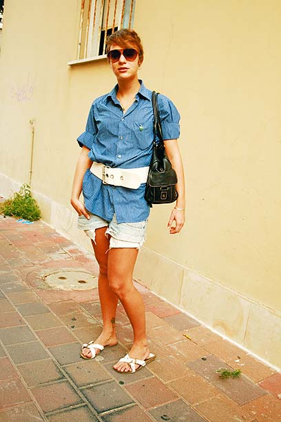 יעל (20) - חולצה וג'ינס: של אבא; סנדלים ותיק: "זארה"; משקפיים: "H&M"; חגורה: "פול אנד בר".