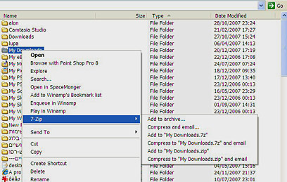 הכי נוח. תפריט הקליק הימני של 7Zip