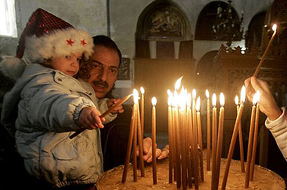 מדליקים נרות בכנסיית המולד (צילום: AP)