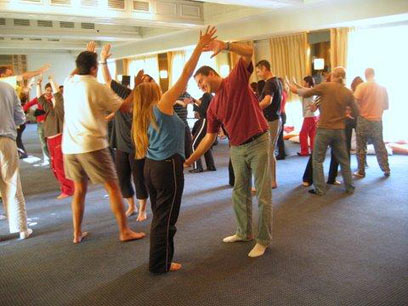 מה אתם יודעים. מסתבר שאפשר ללמוד המון על הרמוניה זוגית גם כשנעדרים מסדנה. את זה עוד לא ידעתי כשפיתיתי את הגבוה לצאת מהמיטה, לזרוק על עצמו משהו (כן, חייבים להתלבש! עירום אתה תצא מהחדר הזה על גופתי המתה!) ולבוא איתי לסדנת האימפרוביזציה לתיאטרון זוגי. יכול להיות שלאוויר נשלחה רמיזה שמדובר בהרצאה ולא בפעילות שתיאלץ אותו ממש להתחכך באנשים אחרים, אין לדעת. אולי זה מסביר למה ברגע שנשמעה בחדר המילה "מעגל אנרגיה", הגבוה התחפף. נשארתי ויהי מה. אנשים התחילו ללכת בחדר, להגיד זה לזה "שלום" בעיניים. אחר כך המדריך ביקש שנדמיין שאנחנו פוגשים מישהו שחייב לנו כסף, מישהו שלא התקלח, ואת הכלב שלנו, פוצי.