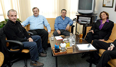 נציגי הצדדים בפגישה. אווירה נעימה, ללא התקדמות (צילום: ירון ברנר)