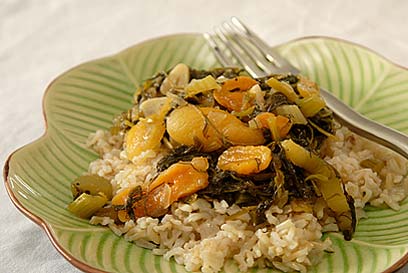 על מצע אורז מלא. תבשיל רשאד (צילום: אסף אמברם)