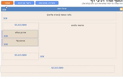 במסך "רכיבי הדף" באפשרות "תבנית" אפשר לסדר מחדש את כל רכיבי הבלוג באמצעות ממשק פשוט של גרירה ושחרור. לא רק ניתן להזיז את רכיבי הדף אלא גם לערוך את רובם – למשל, לקבוע מהיכן תיטען תמונת הכותרת – מהמחשב האישי או מהאינטרנט או להוסיף רכיבים לטור הצדדי, בהם: