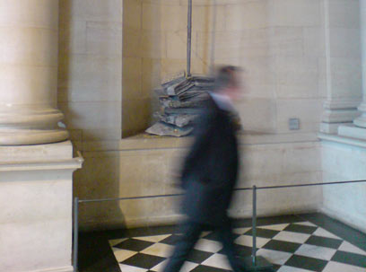 בזמן שהיא אכלה בגט במזנון הלובר, ישבתי עם מפת המוזיאון, ותכננתי סיור הגיוני במידותיו, באזורים המעניינים יותר, כשהמטרה היא המונה ליזה, בעיקר כי הגיע הזמן. לא עזר לי. התפתיתי לעשרות הפוסטרים שמפרסמים את העבודה של אנסלם קיפר, האמן הראשון שמוצג בלובר בעודו בחיים. מישהו שם תכנן את המוזיאון כמו מנהל מכירות משוכלל של רשת מרכולים, שמעביר אותך את כל הסופר רק כדי לצרוך את החלב החיוני שלך. האטרקציה האופנתית של הלובר מוצגת בליבו של האגף המשמים ביותר שלו, בגרם מדרגות שמחבר בין העתיקות המצריות והמסופוטמיות באגף סאלי.
