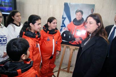 רונה רמון ותלמידים בכנס המדע והחלל, אתמול (צילום: רוני כרמלי)