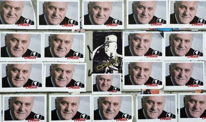 תמונותיו של ניקוליץ' וביניהן תמונת הגנרל רטקו מלאדיץ' (צילום: AFP)