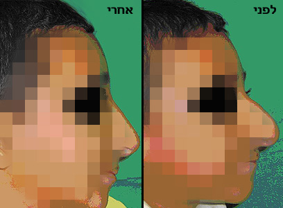 לפני הניתוח ואחריו. האף שגדל חזר למצבו הנורמלי לאחר הניתוח