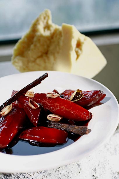 חבושים מבושלים בתבלינים, מוגשים עם גבינת פקורינו כבשים