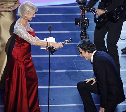 דניאל דיי לואיס מקבל את הפרס מידי הלן מירן