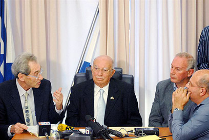 מציגים את הסל החדש. השר בן-יזרי ופרופ' פיינרו (משמאל) במסיבת העתונאים (צילום: ירון ברנר)