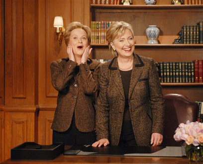 הסנאטורית מניו יורק הופיעה אמש בתוכנית המערכונים של רשת NBC "סטרדיי נייט לייב" ובה התיחסה להתגייסות התקשורתית למען יריבה, הסנאטור ברק אובאמה - לא בלי מעט הומור עצמי. הופעתה אמש היא חלק מגל הופעות בתוכניות ה"לייט-נייט" בארה"ב, לקראת הפריימריז הגורליים ביום שלישי - שעשויים לקבוע אם היא פורשת מהמירוץ