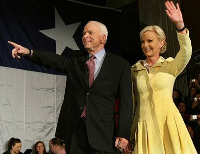 ג'ון מקיין ורעייתו סינדי, הלילה בטקסס. המירוץ החשוב לפניו (צילום: AFP)