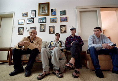 כבר חושך. מרלין, גבר אמריקאי המנהל את בית התמחוי, מזמין מונית ומוביל אותנו לדירה בשדרות ירושלים ביפו. השעה כבר סמוך לתשע. יורי, האחראי על הבית, פותח לנו את הדלת, מברך לשלום ומזמין את כולנו להיכנס לסלון ולשבת. הדירה מרווחת, צנועה, אבל בכל זאת סוף סוף ריח של בית. הכול מואר, ברקע, טלוויזיה משדרת סרט רוסי. אל הסלון נכנסים דיירי הבית ומחליפים לחיצות ידיים וחיבוקים חמים עם מרלין, המתקבל כאן באהבה ובכבוד רב. כולם מחייכים זה אל זה. אני מביט בבוריס וגנאדי, מצפה לתגובה כלשהי מהם. נראה שעדיין אינם מעכלים את המתרחש. לפני שעות ספורות נזרקו מ"ביתם". הם עדיין מבולבלים. על פניהם אני רואה מבט מבויש, אולי אשם?