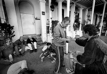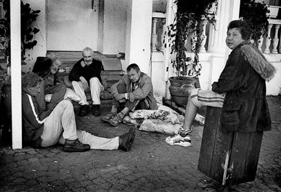 בזמן שהם יושבים ברחוב ללא תזוזה, עסקתי, כל אחר הצהרים והערב, בטלפונים, בניסיון למצוא להם פתרון כלשהו. ארגון "רופאים לזכויות אדם" לא יכלו לעזור הפעם. הם אינם עוסקים בדיור. הם נתנו כמה עצות היכן אפשר לנסות. ניסינו. בעיריית תל-אביב לא עזרו. הפתרון היחיד ברשותם הם ה"גגונים" - אולמות שינה ורחצה מיוחדים לדיירי רחוב. אולם חלק גדול מאוכלוסיית הגגונים הם צרכני סמים. גנאדי ובוריס מפחדים מהם. לדעתם מסוכן ללון שם, במיוחד כשאתה עיוור.