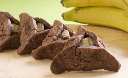 אוזני המן מבצק פריך קקאו במילוי קרם שוקולד ובננות