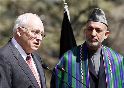 סגן נשיא ארצות הברית, דיק צ'ייני, הגיע היום (ה') לביקור פתע באפגניסטן ונפגש בבירתה קאבול עם הנשיא האפגאני, חמיד קרזאי. לאחר הפגישה אמר צ'ייני כי ארה"ב תבקש מחברות נאט"ו להגביר את מחויבותן לסייע לאפגניסטן להשתקם מהשנים הרבות שסבלה מדיכוי ומלחמה.