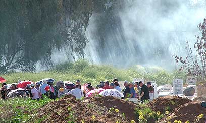 אזכרה אפופת עשן, היום בתל מונד (צילום: רענן בן צור)