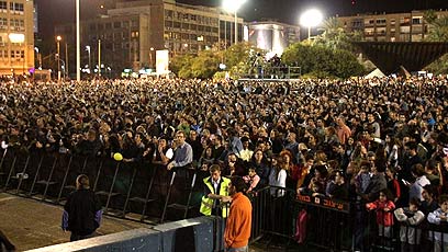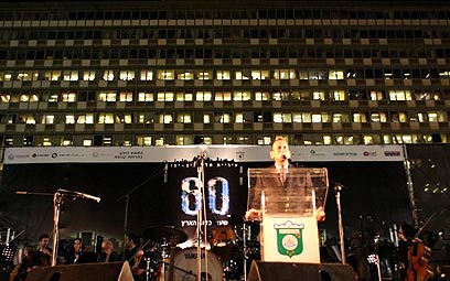בדיוק בשמונה בערב כבו האורות בבניין עיריית תל אביב. כמה דקות לפני תחילת האירוע בכיכר רבין, עלה על הבמה ראש העיר רון חולדאי וספר לאחור את השניות יחד עם הקהל עד לרגע המיוחל. כשהגיעה השעה עלתה על הבמה להקת כנסיית השכל יחד עם עוד ארבעים נגנים, והפכה את הכיכר למסיבה אחת גדולה.