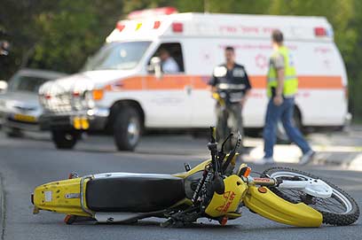 האופנוע מוטל על הקרקע, התאונה בבית כרם (צילום: גיא אסיאג)