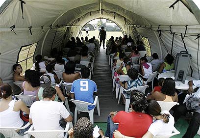 לרבים לא נמצאו מיטות, והצבא הקים בתי-חולים שדה (צילום: AP)