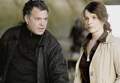גיתאי עם השחקנית ז'ולייט בינוש במהלך צילומי "התנתקות" שפותח הערב בפריז