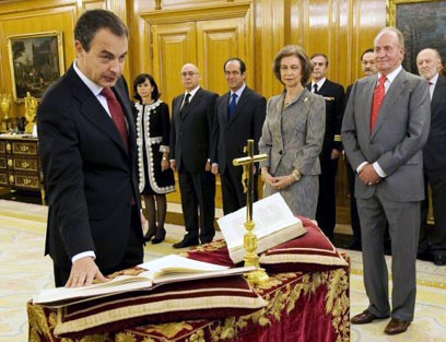 ספטרו נשבע אמונים לצד המלך חואן קרלוס, הבוקר (צילום: AFP)