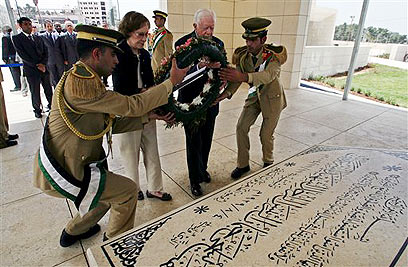 קרטר מניח זר על קברו של ערפאת (צילום: AP)