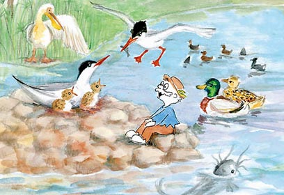 שחפית ים. איור: מירי לשם-פלאי. מתוך הספר "לטייל בישראל עם פרופסור פצפונטבע", בהוצאת משרד הבטחון