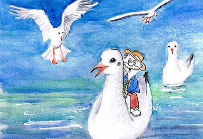 שחפים. איור: מירי לשם-פלאי. מתוך הספר "אל עולם הציפורים עם פרופסור פצפונטבע" בהוצאת משרד הבטחון
