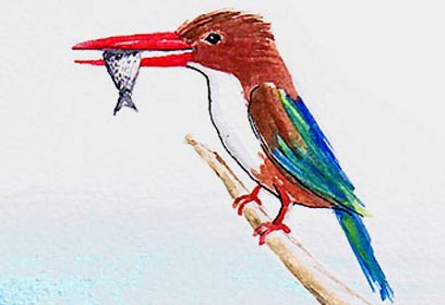 שלדג לבן חזה. איור: מירי לשם-פלאי. מתוך הספר "אל עולם הציפורים עם פרופסור פצפונטבע" בהוצאת משרד הבטחון