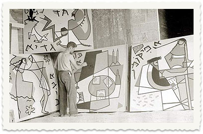 6. גיורא נובק, אמן, מכין קישוט פסח לחדר האוכל
