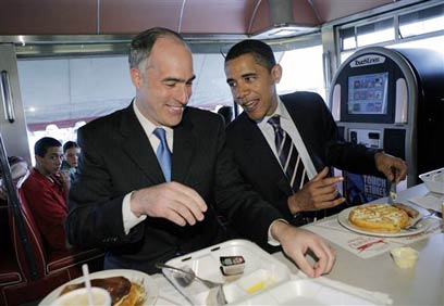 אובאמה סועד עם הסנאטור בוב קייסי בסקרנטון, פנסילבניה (צילום: AP)