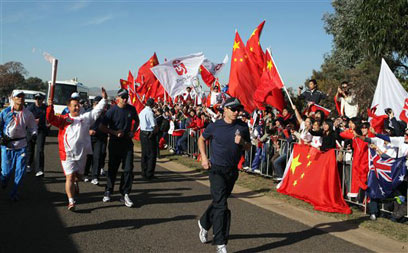 למרות החשש הכבד מעימותים, עבר הבוקר (ה') מסע הלפיד האולימפי ברחובות קנברה, בירת אוסטרליה, ללא הפרעות מיוחדות. אלפי סטודנטים סינים הלומדים באוסטרליה צבעו את רחובות העיר באדום של דגלים סינים וקיבלו את הלפיד בתשואות רמות.
