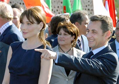 סרקוזי וברוני היום בטוניסיה, שם חתם על עוד הסכם גרעין (צילום: AP)