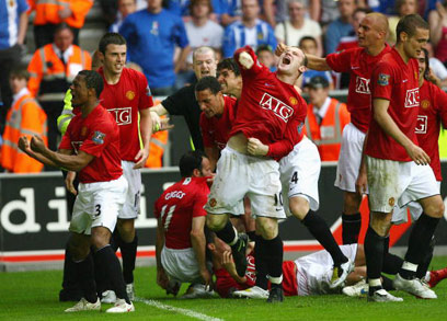 החניכים של אלכס פרגוסון עשו את המוטל עליהם עם 0:2 ניצחון בוויגאן (רונאלדו בפנדל וגיגס) וזכו בתואר בפעם השנייה ברציפות. המנג'ר הישראלי ספג עם קבוצתו שער מבולטון בתוספת הזמן וסיים בשיוויון 1:1 שלא שינה דבר