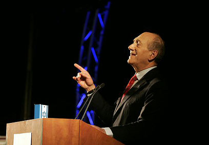 "אין לנו רצון גדול יותר מהשלום". אולמרט בכנס קק"ל (צילום: AFP)