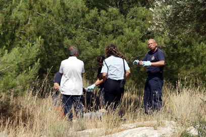 שוטרים בזירת הרצח בתל חדיד, ליד בן שמן (צילום: גיל יוחנן)