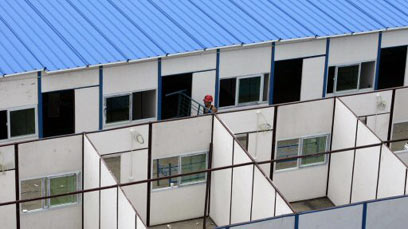 בניית מקלט זמני עבור ניצולי הרעש בדוג'יאנגיאן (צילום: רויטרס)