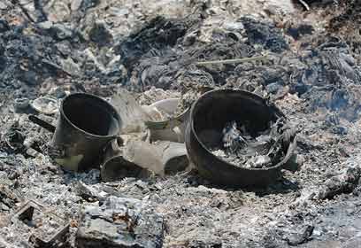 "אדמה חרוכה". שאריות ציוד במאהל בפלמחים (צילומים: דודו אזולאי)