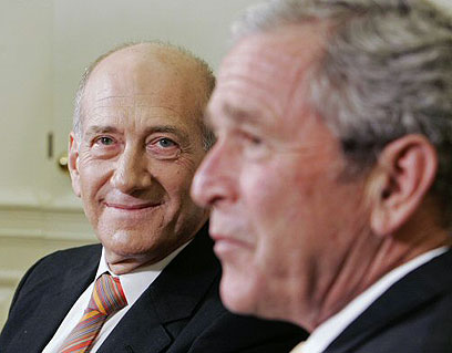 סיוע צבאי על הפרק. בוש ואולמרט (צילום: רויטרס)