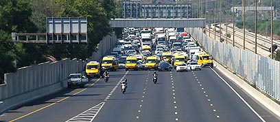 החסימה בנתיבי איילון (צילום: ירון ברנר)