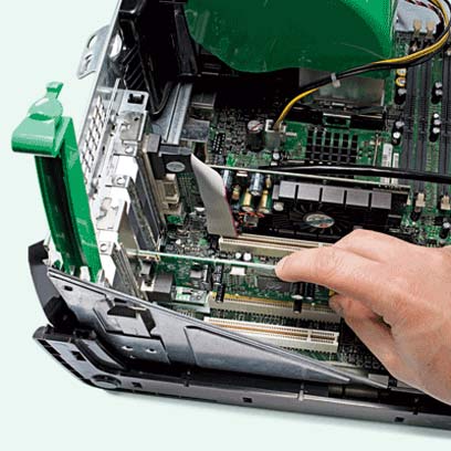 אחרי הספא שתעשו לקופסה, המאווררים ירוצו באופן נטול עכבות, מה שאומר שהמחשב שלכם יתחמם פחות. זה הזמן לפרק באלגנטיות כרטיסי PCI בהם אתם כבר לא משתמשים. למחשב ה-Dell 8300 שלנו היה מחובר מודם מיותר לחלוטין. פירקנו גם כרטיס טלוויזיה ישן ואת המאיץ הגרפי הארכאי. עכשיו יש מקום לקצת שדרוגים.