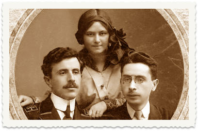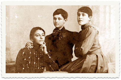 1. 1912 - לקראת סיום לימודי המחזור הראשון של הגימנסיה הרצליה. מימין: רבקה רזניק, צילה (מאד אהבה לבוש גברי), רבקה שרתוק (הוז).