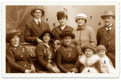 3. נובמבר 1913, לפני נסיעתה של צילה לגרמניה הגיעה המשפחה אל הצלם אברהם סוסקין לעשות צילום משפחתי: 1 - הדודה אולגה חנקין, 2 - צילה, 3 - אמא פאני, 4 - זהרה (הנכדה), 5 - עכסה (בת ישראל ודובה בלקינד), 6 - הדוד ישראל בלקינד ואשתו דובה (7), 8 - הדודה סוניה (בלקינד) חנקין, 9 - אבשלום.
